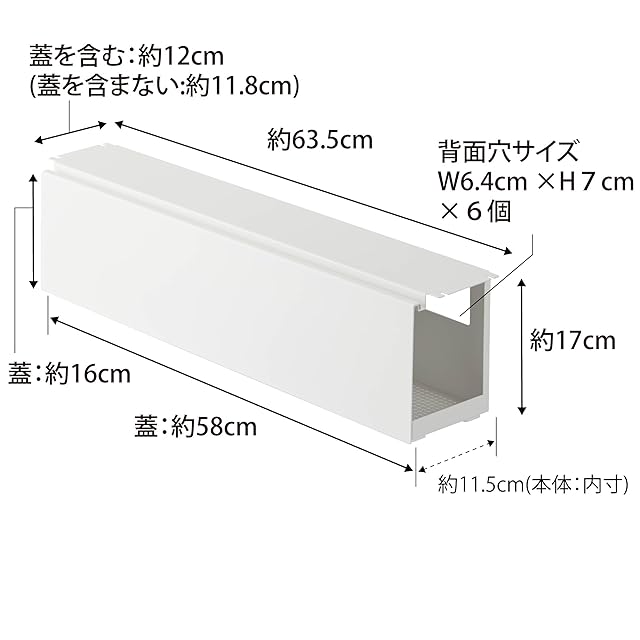 山崎実業(Yamazaki) デスク下 天板ケーブルラック ロング ホワイト 約W63.5×D12×H17cm タワー tower ケーブル 電源タップ 収納 ネジで固定 カバー付き 4478
