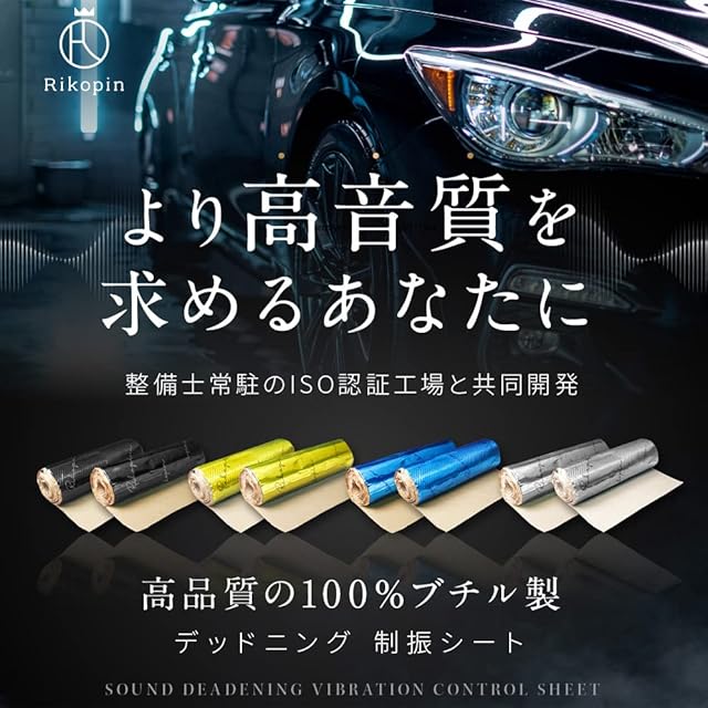 Rikopin(リコピン) デッドニング 【5m】 デッドニングシート 制振シート 断熱シート 防火断熱遮音シート 自動車用 吸音 防音 厚み2.3mm×幅46cm×長さ5m (ブラックアルミ/ブラック格子模様)