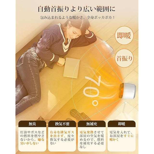 【もっと快適に、安心の暮らしを支える多重安全設計搭載】思わず蹴っ飛ばしたっり、不意の衝撃や地震などで転倒したりしまった時に自動で電源がオフになる「転倒オフ機能」。また、ひーたー内部の温度が上がり過ぎた時に自動で運転停止する「二重過熱防止機能」の安全機能は備えており、使用方法の不注意によるケガや事故が絶対に防げるわけではありません。ファンヒーター 電気の外装素材は「V0級難燃性安全素材」を使用され、高温でも燃えにくく安全性さらに固める。日本国内電気用品安全法(PSE)認証済です。安全・安心・安定・快適・満足な暮らしを提供します。