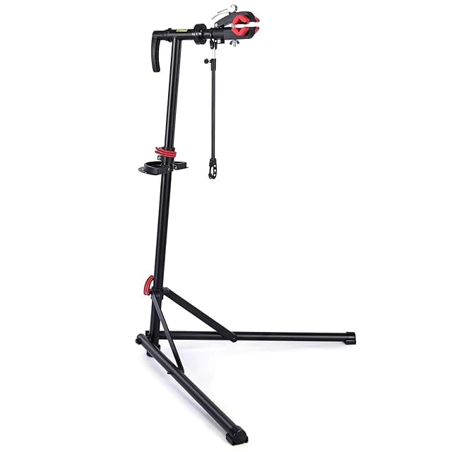 CXWXC 自転車 メンテナンススタンド ワークスタンド ロードバイク スチール製 高さ/角度調節可 折りたたみ式 ディスプレイスタンド 工具トレー/ハンドル支えバー付 ブラック(CX-C10BK)