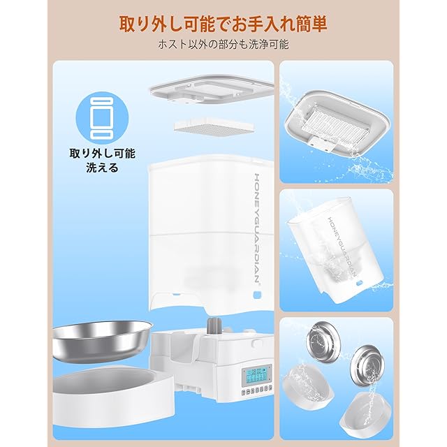 HoneyGuaridan 自動給餌器 猫 犬 小動物 2匹用 多頭飼い 自動餌やり機 3.5L容量 定時定量 1日6食 猫 餌 自動 2個のステンレスボウル付き ペット給餌器 タイマー式 複数の鮮度保持 水洗い可能 音声録音 手動給餌 2WAY給電