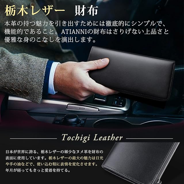 [ATIANNI] 財布 メンズ 長財布 栃木レザー 本革 大容量 YKK製 L字ファスナー 一流の財布職人が作る スキミング防止 ウォレット 小銭入れ 紳士用 ビジネス スタイリッシュ 牛革 さいふ 男女兼用 ブラック