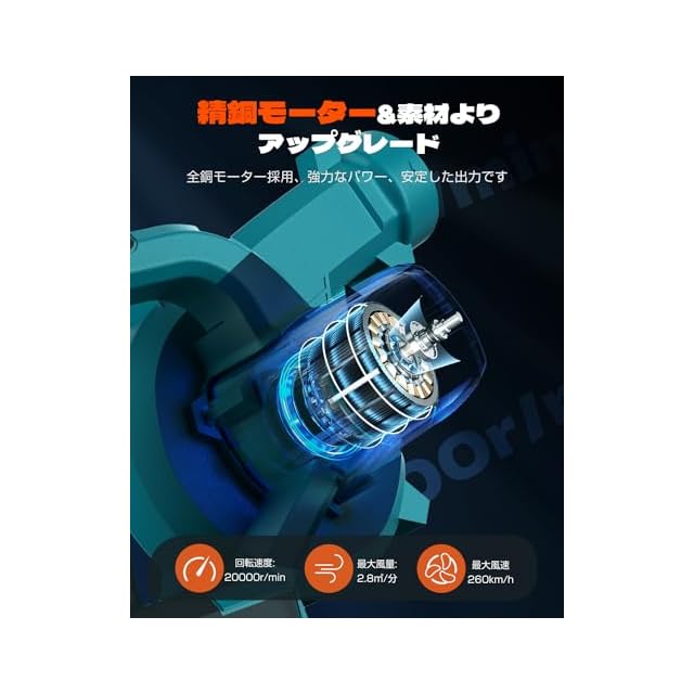 【精銅モーター&強力パワー】電動ブロワーは純度が95%まで精錬された銅をモーターの素材にし、回転速度は最大20,000r/min、根本的に増圧効果をあげ、安定した強力なパワーを誇り。「鋭利なもの、石や砂利、金属片、濡れたものはモーターを損傷しやすいので、吸塵機能を使用する際はこれらを吸い込ませないでください。」