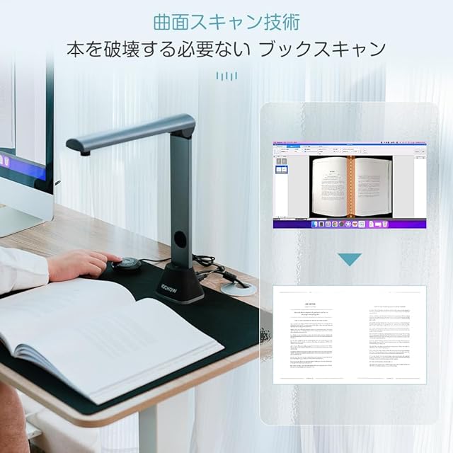 iOCHOW ブックスキャナー ドキュメントスキャナー S3 1700万画素 非破壊 自動平坦化 最大A3サイズ対応 多言語OCR機能 USB書画カメラ オフィス