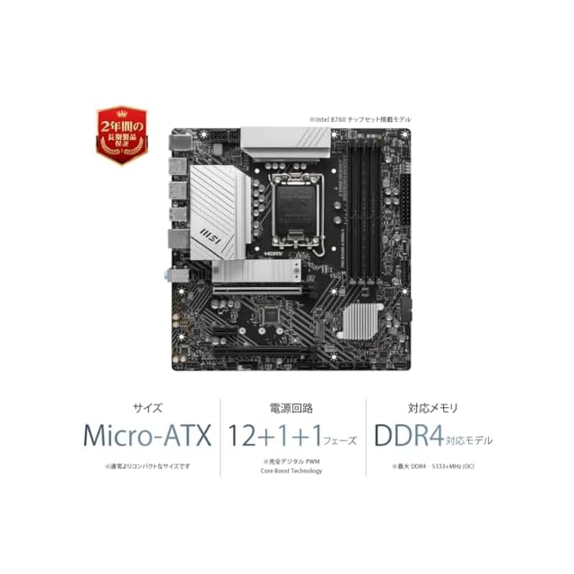 MSIマザーボード PRO B760M-A DDR4 II 第14/13/12世代Intel CPU(LGA1700) 【白い自作PCで快適ゲーム】 [B760 搭載] MB6318
