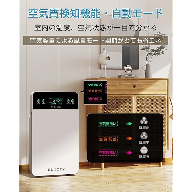 空気清浄機 HEPAフィルター 空気清浄器 空気質検知 AUTOモード PM2.5 風量3段階設定 強力 静音 省エネ タッチパネル タイマー機能 空気循環 アレルギー/ほこり/花粉/タバコ臭い対策 脱臭 台所 寝室 ハウスダスト ペット臭 トイレ臭 適用床面積35畳 PSE認証済み リモコン付