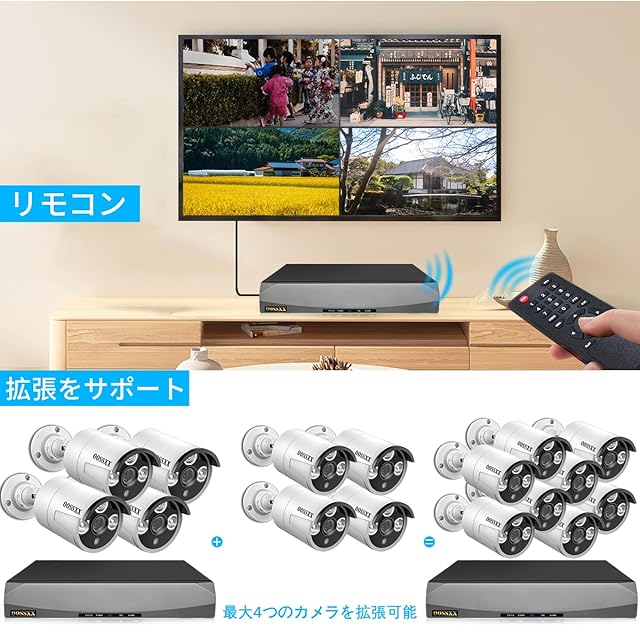 {H.265圧縮技術} 容量を省くため次世代の高度なH.265動画圧縮規格を採用し、従来のH.264と比べて画質を保ったまま2倍以上長時間録画可能、2TB HDDが内蔵され、常時録画が最大約60日でございます。HDDがいっぱいになると、前のデータが自動的に上書きされてます。