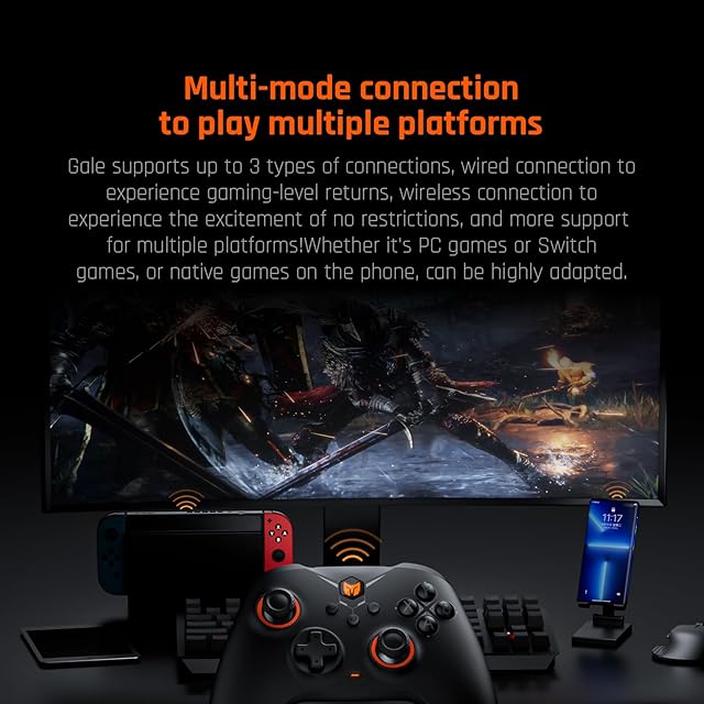 【3つの接続方法で無制限の体験を実現】PCゲームコントローラーは3つの接続方法をサポートしています。 付属の Type-C ケーブルによる有線接続では素晴らしい照準体験が得られ、Bluetooth と付属の USB アダプターによるワイヤレス接続では無制限のゲームを楽しむことができます。 ゲーム コントローラーはマルチプラットフォームをサポートし、PC、Switch、iOS、Android に高度に適応しています。Gale Switch用コントローラーでマルチプラットフォームでゲームを楽しむ。