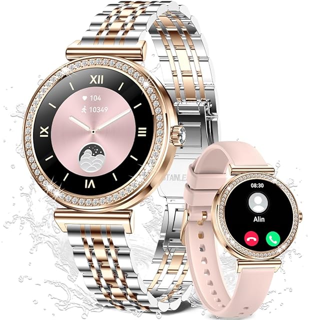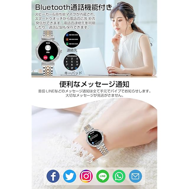【おしゃれなスマートウォッチ】この女性用スマートウォッチは、ファッションと機能が調和しています。女性用腕時計の金銀色ベルト、文字盤のダイヤモンド装飾が腕時計に少し贅沢感を加え、女性の高貴さと優雅さを示している。実用性と装飾性を両立したデザインで、日常のファッションアクセサリーとしても、重要な場に出席する際の美しい装飾としても適しています。若い女性、妻、ビジネスウーマンに適しています。母の日、誕生日、記念日、バレンタインデー、成人式、クリスマスなど、さまざまなイベントへのプレゼントにもおすすめです。