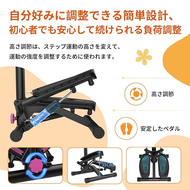 【簡単な負荷調整で目標を達成】あなただけのフィットネスプランに最適化された、高度な足踏み負荷調整機能を搭載しています。踏み台を高くするほど、トレーニングの強度がアップします。当社独自のねじ式設計により、負荷調整は簡単かつ迅速に踏み台の高さを変更可能です。より高い負荷でのエクササイズを実現でき、このステッパーはどんなフィットネスレベルの方にも適しており、初心者からプロレベルまで、一人ひとりのトレーニング要望に応じたカスタマイズが可能です。
