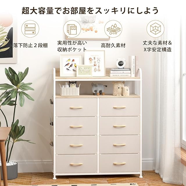 【強度が高い構造で安定&安全のチェスト】1.5CM*1.5CMでのフレームやX字補強ワイヤー構造で安定感がUP!まだ壁固定具付きで揺れを軽減できます。