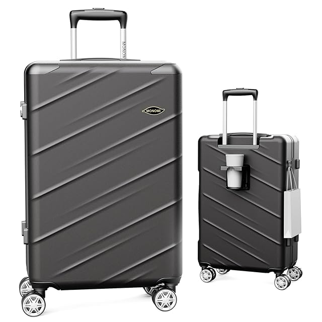 [MONOMI] ストッパー付き スーツケース 機内持ち込み ドカップホルダー搭載 キャリーケース キャリーバッグ 大型 軽量 sサイズ 2泊3日 ケース キャリー 大容量 luggage suitcase ファスナータイプ 静音 ダブルキャスター TSAローク海外 旅行 ビジネス 出張 40リットル 1〜3泊 ブラック色