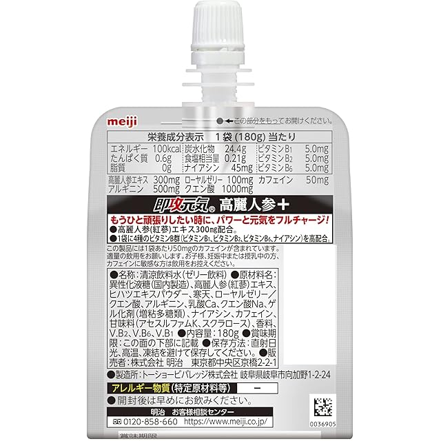 即攻元気ゼリー 高麗人参+ 栄養ドリンク味 180g×36個 【ケース】 明治