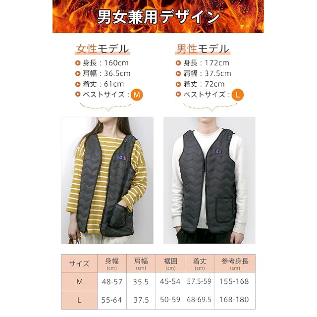 [Nowala] 【2024新登場・日本製ヒーター】 電熱ベスト ヒーターベスト バッテリー付き 60℃極暖 3段階温度調整 前後独立スイッチ 加熱ベスト 防寒ベスト メンズ レディース USB給電 電熱ウェア 通勤 通学 釣り アウトドア 洗濯可 男女兼用 (JP, アルファベット, M, バッテリー付き−ブラック)