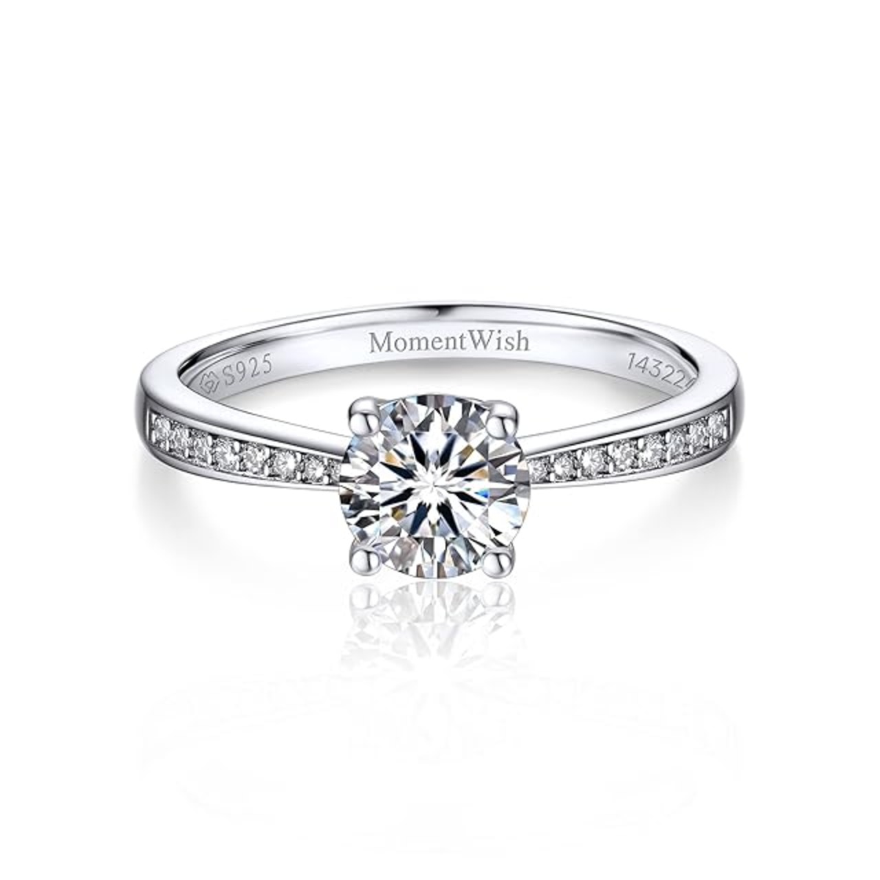 [MomentWish] 婚約指輪 レディース, 1カラット モアサナイト リング, シルバーリング 925 プロポーズリングエンゲージリング-Size12