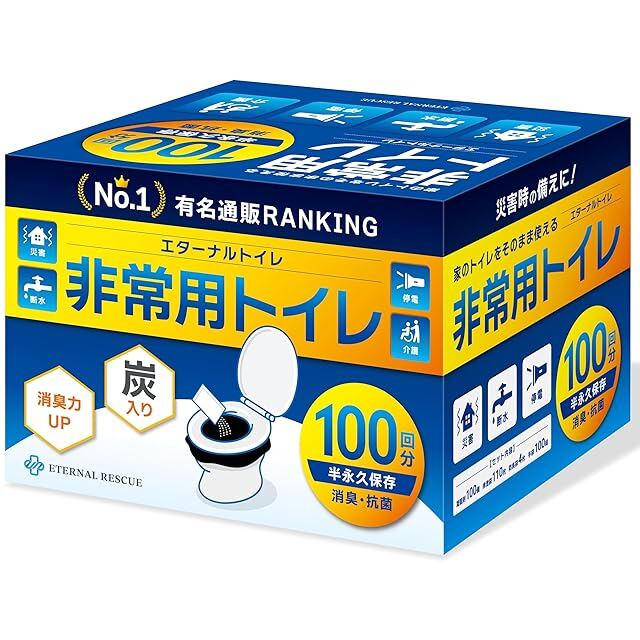 ETERNAL RESCUE 【炭入り 半永久保存】 100回分 簡易トイレ 携帯トイレ 非常用トイレ 非常 トイレ 防災グッズ 災害 備蓄 凝固剤 水 吸水ポリマー 大便 小便 s-100