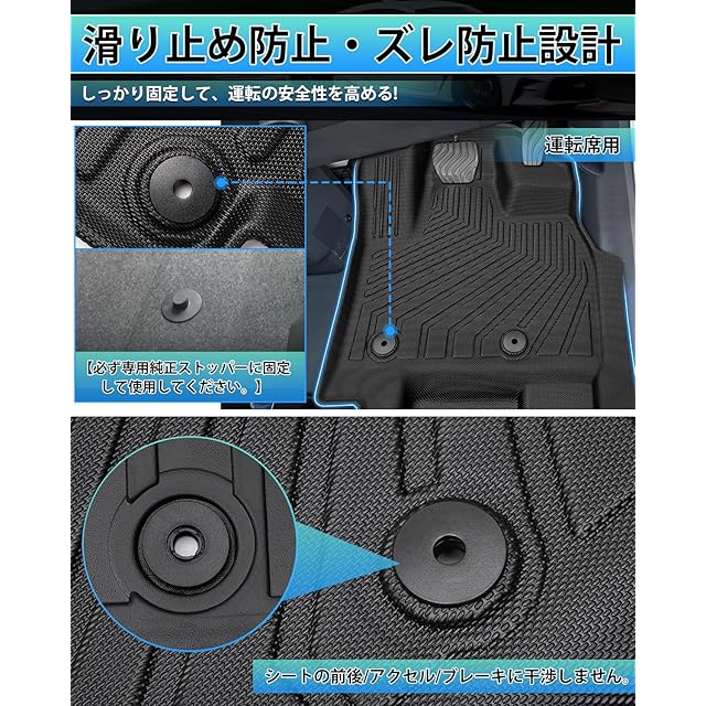 5.【専用設計留め具】:専用設計留め具付き、フロアマットを固定し、運転の安全性を高める!脱着も簡単にできるし、ネジや両面テープなどは要らない取付を採用、到着したすぐに取付できます。※注意事項※:製品包装が折りたたみ式で梱包されているため、到着後にお湯やドライヤーなどで暖めれば元の状態に戻ります。