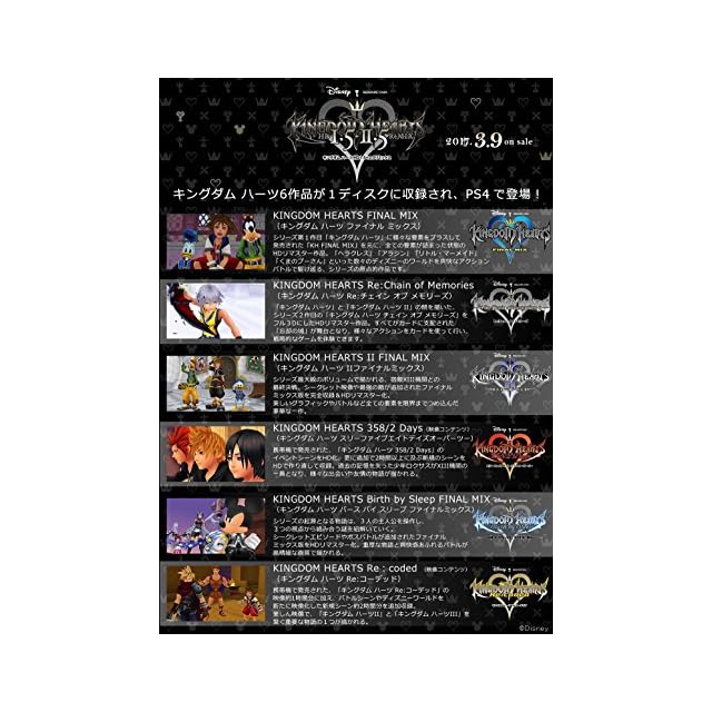 収録作品:「キングダムハーツ ファイナルミックス」 「キングダムハーツ Re:チェインオブメモリーズ」 「キングダムハーツII ファイナルミックス」 「キングダムハーツ 358/2 Days (映像コンテンツ)」 「キングダムハーツ バースバイスリープ ファイナルミックス」 「キングダムハーツ Re:コーデッド (映像コンテンツ)」