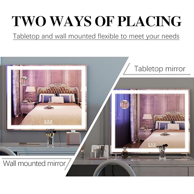 【2取り付け方法】壁掛けミラー/卓上ミラー。女優ミラーは用途が広く、化粧台に置いたり、壁に掛けたりすることができます。