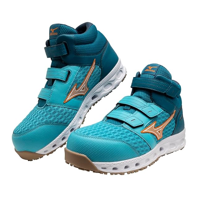 ミズノ 安全靴 オールマイティ ALMIGHTY VH21H ハイカット F1GA2409 通気性 メッシュ (ターコイズ×オレンジ, 26.5 cm)