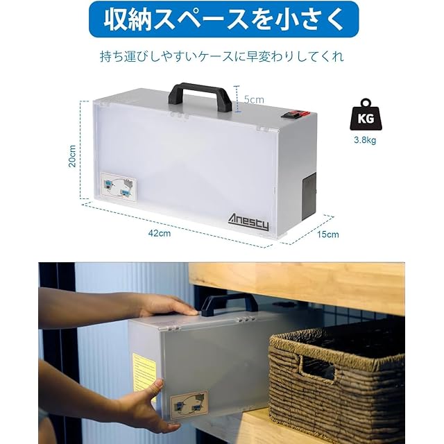 収納スペースを節約できる:折り畳み時のサイズは42×15×20cm。直方体のカバンのような形なので、限られた場所で塗装作業を行う時や、しばらく使用しない時でも、収納場所の心配をすることなく、スペースを効果的に利用できます。持ちやすい取っ手も付いているので、持ち運びは簡単です。