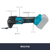 -Makitta18蓄電池にマッチング: 本マルチツールは MAKITTA 18V電池にマッチングします:BL1820 BL1840B BL1820B BL1815B BL1835 LXT-400 BL1845B BL1845 BL1830B BL1850B BL1860等。もし充電器とバッテリーがあったら、バッテリーや充電器のお金を節約できます