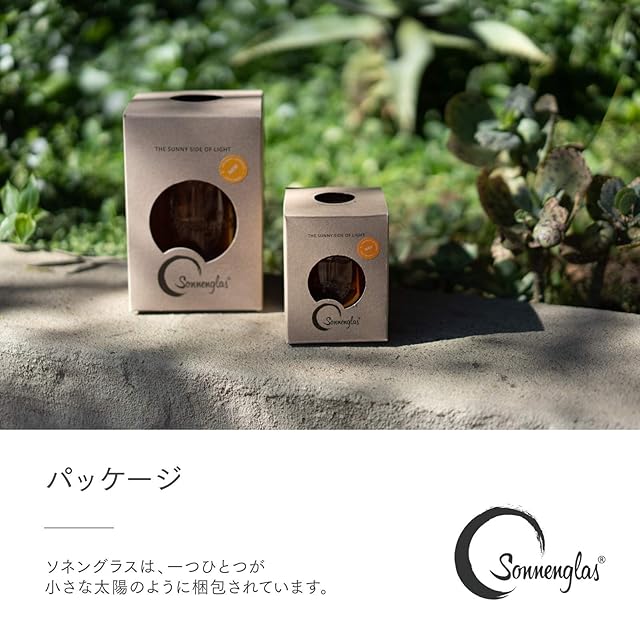 【防災、インテリア、アウトドアに】Generation 6 モデルのソネングラスは、ソ ソーラートップが標準装備されています。ソネングラの瓶から離れてもソ は、備えつけのコントロールボタンによって明かりを灯すことができます。このため、アウトドアや夜間の散歩時などでは電池不要の懐中電灯として活躍するほか、かさばらず防災袋に入れる非常時灯としてもぴったりです。利用シーンが広く、人を選ばず喜ばれるギフトです。
