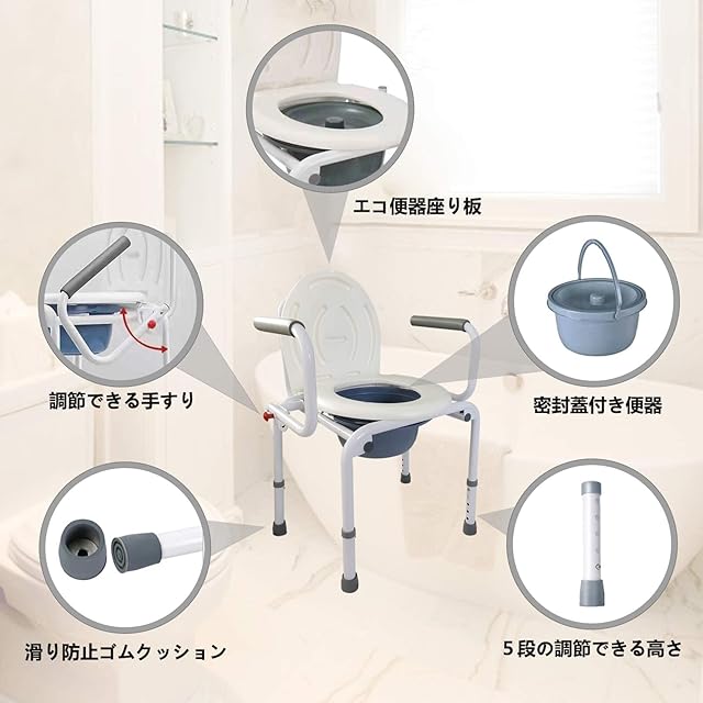 【介護福祉士監修】ポータブルトイレ 高さ調整可能 簡易便座 介護用 簡易トイレ 介護用トイレ おまる 大人用 高齢者 介護用品 耐荷重200㎏