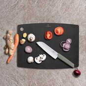 カッティングボードの素材、セルロース繊維加工品は、木工品のような暖かみと素晴らしい外観ながら、 軽くて薄く、食器洗い乾燥機に対応します。さらにプラスチックや通常の木製ボードと比較して非常に丈夫で、深い切り傷を最小限に抑えることができ、また木製ボードのように乾燥でひび割れることもありません。