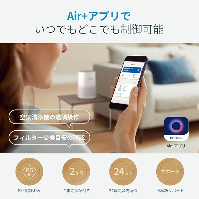 【アプリで制御&2年間品質保証】:Air+アプリで、いつでもどこでも操作可能です。フィリップス空気清浄機製品は2年間の保証期間がついており、お客様が安心できるようにカスタマーセンターを設置しております。製品のご利用中に何かご不明点がある場合、お気軽に弊社公式カスタマーセンターまでにお問い合わせください。(注意事項:交換用フィルター別売、フィルター推奨交換期間の「12ヶ月」は、フィリップスユーザーの平均使用時間とWHOが発表した都市屋外汚染レベルデータに基づいて計算され、実際のフィルターの寿命は使用環境や使用頻度、清掃頻度によって影響されます。フィルターの自然消耗、製品の人為的な損傷や不適切な使用は保証の対象外となります。予めご了承ください。製品をご利用する前にフィルターの包装を取り外してください。ACアダプターはパッケージの上部にあります。ご使用前にパッケージを上から開梱し、ACアダプターを取り外してください。)