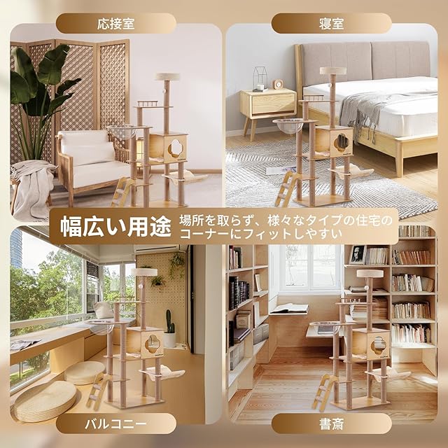 多頭飼い:キャットタワーにはたくさんの休憩スペースが設計されているので、多頭飼いの場面でも活躍します!猫たちはここで遊んだり、休んだり、眠ったりしていて、その姿を見るだけでも癒されます