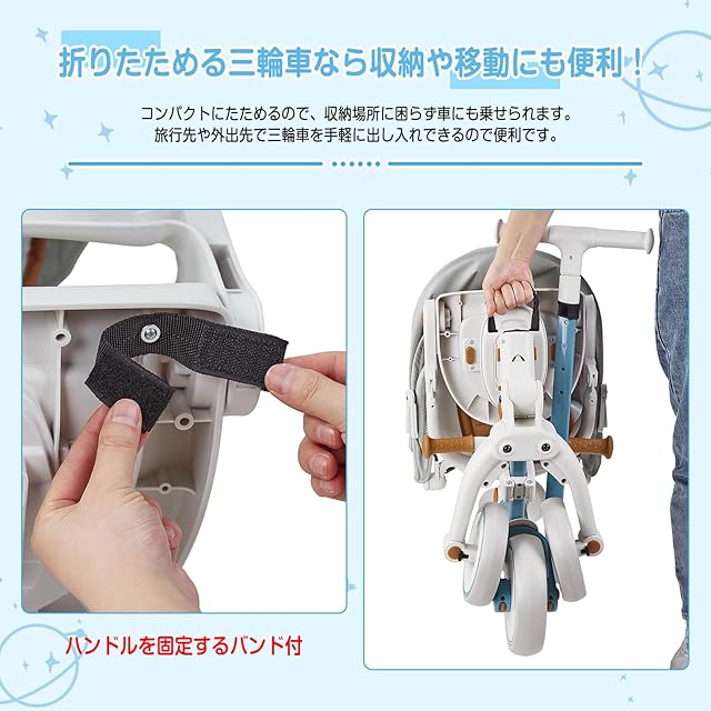 Thinkmax 子供三輪車 ベビーカー 6in1 折りたたみ 手押し棒付き 乗用玩具 超軽量 乗り物 組み立て簡単 コンパクト収納 1歳〜6歳 プレゼント T11B