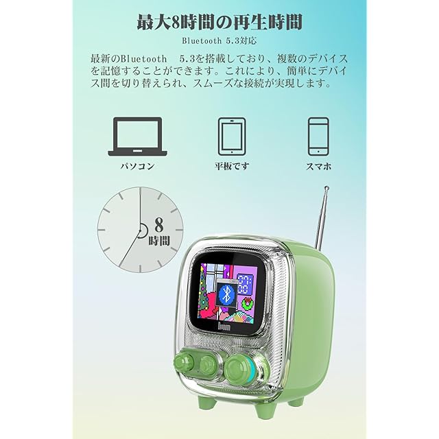 Divoom Tiivoo-2 レトロ Bluetooth スピーカー 付FM ラジオスピーカー 可愛い/ワイヤレス スピーカー 小型 おしゃれ/多機能オ ピクセルアート/時計/アルバムアップロードです/ホワイトノイズ/贈り物 Android/iPhone対応(グリーン)