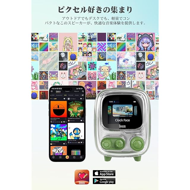【大規模なピクセルアートコミュニティ】指先で簡単に自分のピクセルアートを描くことができるだけでなく、Divoomアプリ内の膨大なピクセルアートギャラリーで他の作品もチェックできます。無料のピクセルアートコミュニティでは、1000人以上のデザイナーと出会えます。他のアーティストとチャットしたり、コメントを残したり、友達になることも可能です。