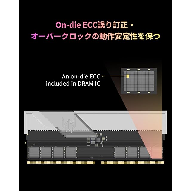 【オーバークロック対応】Intel XMP 3.0および AMD EXPO認定。XMPプロファイルによる簡単にオーバークロックできます。また、オンダイ ECC(ODECC)は限界を超えながら究極のパフォーマンスを持続し、データ完全性の維持に役立ちます。