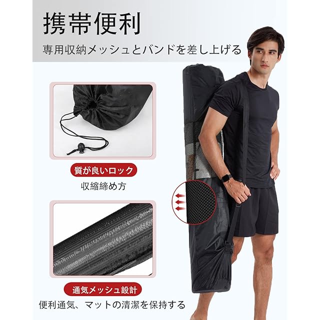 1.【大きめヨガマット】サイズ:200cm*130cm、常のエクササイズマットより60㎝程大きいので、 二人は一緒にヨガをするても余裕があります。持ち運びに便利なストラップ収納ケース付き。