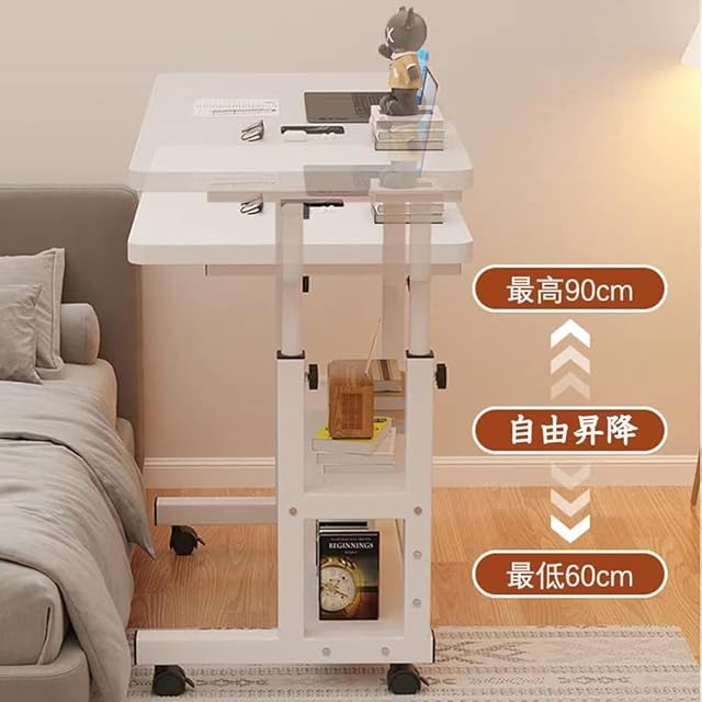 【多用途】サイドテーブル 、実用性の高い昇降式テーブルは、様々なシーンで活用できます。寝室やリビング、書斎などに置くのに適しています。pcデスクとしてだけでなく、サイドテーブルや、オフィステーブル、子どもの勉強机、介護用テーブルなどにも使えます。底部には本や小物なども収納でき、大活躍です。