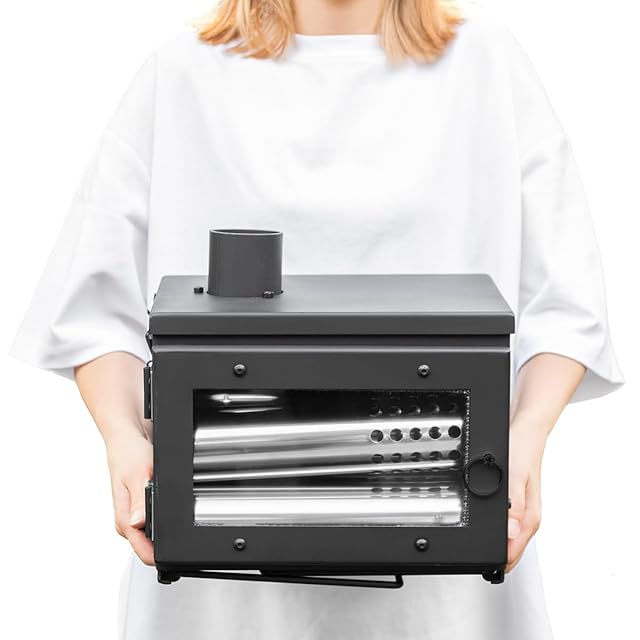 最大煙突長 1.24m 使用時最大の高さ (煙突+本体) 1.6m 投入可能な薪サイズ 20cm以下 / Weight : (本体のみ) 5.9kg (付属品込) 7.9kg / Material : (本体) 鉄 (煙突、煙突固定リング、火バサミ、焼き網) ステンレス 最大熱出力:1kw / 製品保証 : 6か月 (ガラスは保証対象外)