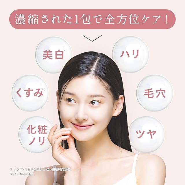 【ご使用方法】洗顔後、パウチ1包分を乾いた清潔な⼿のひらにとり、お顔全体に優しくなじませます。その後お手持ちの化粧水で肌を保湿してください。 原材料・成分:アスコルビン酸、プロピレングリコール