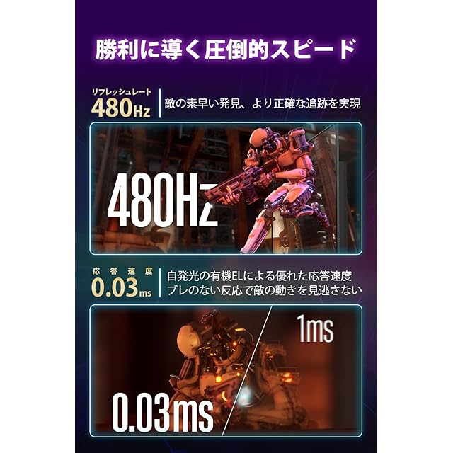 プロeスポーツチームFnaticと共同開発。480Hzのリフレッシュレートで敵の素早い発見と正確な追随が可能。FPSに特化した画質モード搭載で,敵の視認性を高める。