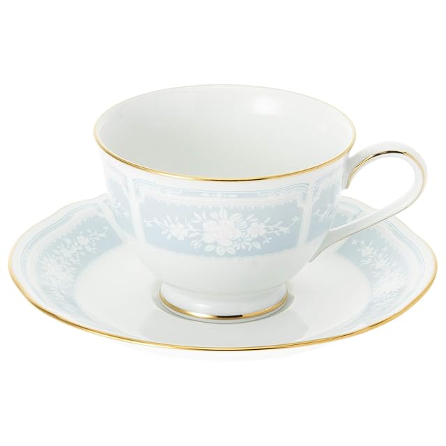 Noritake ノリタケ カップ & ソーサー セット ( コーヒー ティー 兼用) 220cc レースウッドゴールド 5客 ブルー ファインポーセレン H9587A/1507