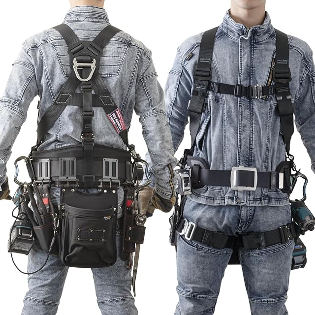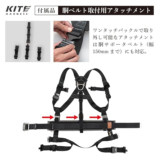 [藤井電工] 新規格 フルハーネス型 カイトハーネス KITEハーネス フルハーネス本体のみ Mサイズ 130KGまで対応 ブラック 黒 TH-521-OT-BLK-M 腰道具を多く装着してもズレにくい ワンタッチで胴ベルトの着脱が可能 着脱が容易なワンタッチバックル 水平型腿ベルト 日本製 2023年モデル 高所作業 墜落制止用