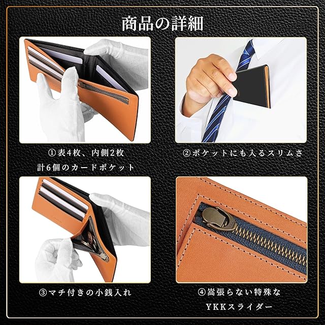 ✅【 タイプ 】極薄 2つ折り財布 【 素材 】タンニンなめし 本革 【 サイズ 】横幅10cm×縦幅9cm×厚み1cm 重さ50g 【 仕様 】札入れ x1 カード入れ x6 小銭入れ x1