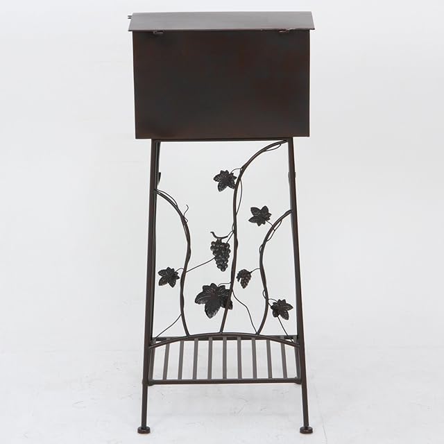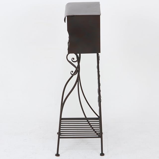 不二貿易 メールボックス ポスト 郵便受け 幅42.5×奥行34.5×高さ99cm ブラウン 置き型 スタンドタイプ 棚付き グレープ 38174