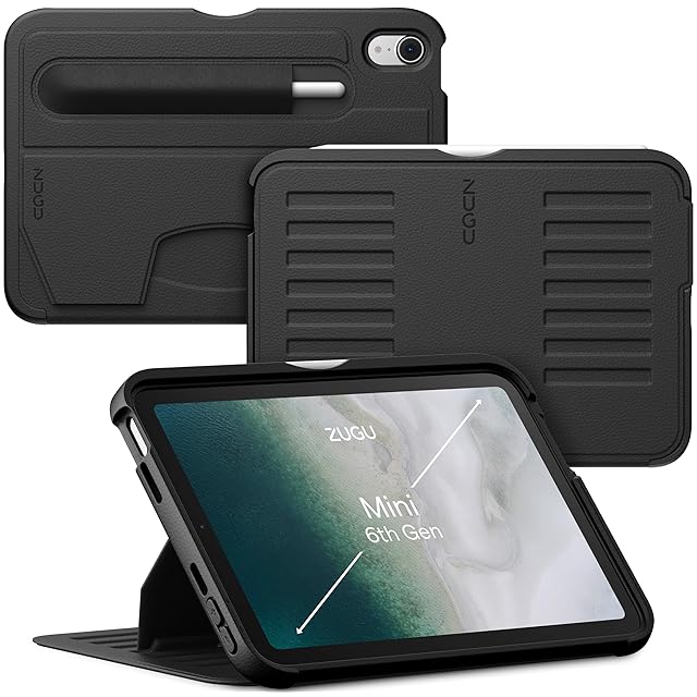 ZUGU iPad Mini 7 / 6 ケース 2024 (A17 Pro / 第7世代) & 2021 (第6世代) 極薄 落下衝撃保護 7段階スタンド機能 Apple ペンホルダー ワイヤレス充電 オートスリープ スマートカバー (Mini7 / Mini6 カバー ブラック 黒)