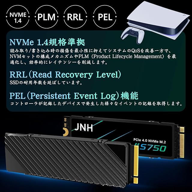 JNH SSD 2TB PCIe Gen4x4 NVMe 1.4 M.2 2280 ヒートシンク搭載 新型PS5 / PS5動作確認済み R:7400MB/s W:6700MB/s 高耐久3D NAND TLC S750 国内正規品 メーカー5年保証