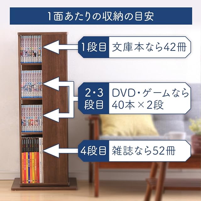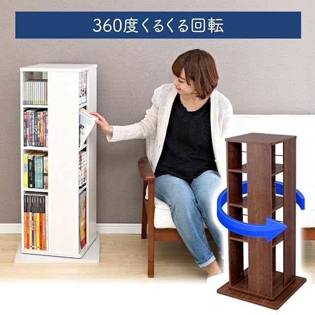 アイリスオーヤマ 本棚 大容量 回転 棚 収納棚 ラック スリム 棚 おしゃれ ラック おもちゃ スライド 収納 コミック ラック 回転 4段 幅43×奥行43×高さ101.4cm ウォールナットブラウン CR-1000