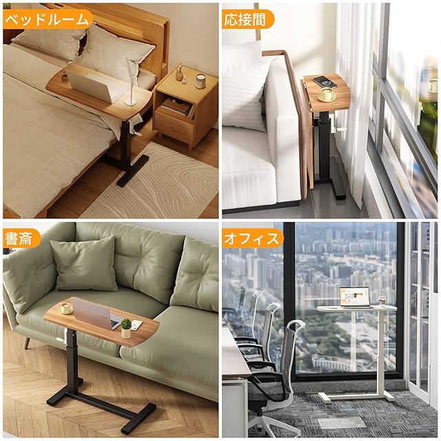 サイドテーブル 昇降式デスク高さ64-93.2㎝ 在宅ワーク PCデスク幅80cm 高さ無段階調節 介護用 ベッドテーブル (折畳み, 木の色)