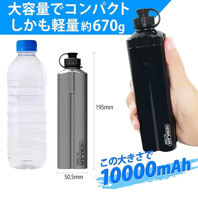 HEMAJUN(ヘマジュン)電動リール用バッテリー 10000mAh シルバー 大容量 ダイワ/シマノ電動リールと互換性あり リチウムイオンバッテリー 急速充電器2.0A、電源コード2m、専用ポーチ付(102-09-silver)