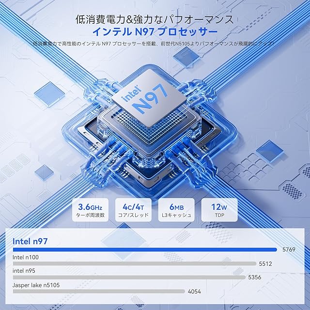 【初登場ACEMAGIC V1 ミニPC 高性能で低消費電力、N150より速いのインテル 最新第12世代n97 プロセッサー搭載】このミニpcはパルス周波数3.60GHzまで、4コア4スレッドで動作し、7nmプロセス技術を採用するintel n97プロセッサーを搭載されています。ミニPC n97 は前世代のn5105などプロセッサーよりパフオーマンスが最大約45%上向し、動作鈍い、ブルースクリーン、フリーズなどよくある問題が大幅に軽減されます。非常にパワフルなN97ミニPCです。ホーム サーバー、学校教育、Web ブラウジング、ビジネス オフィス、ビルボードなど、より要求の厳しいニーズを満たすのに十分です。ミニPCに最新のオペレーティング ミニpc Windows11 Pro にプリインストールされ、わざわざと更新する手間が必要なく、届いたらすぐに使えます。Ubuntu、Linux、Win11 Home、Win11 IOT、Windows11pro各システムに対応しています